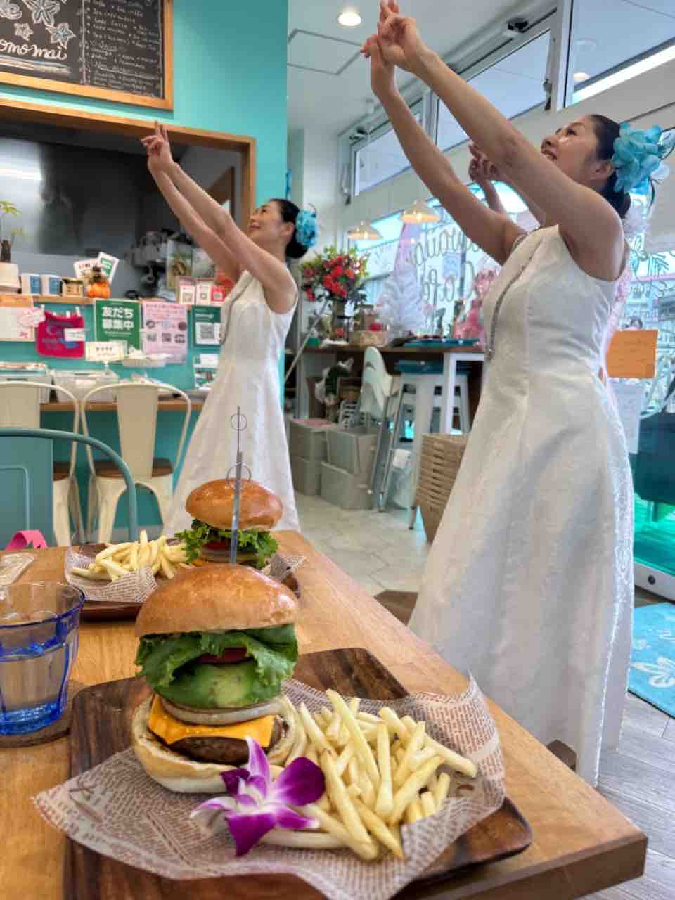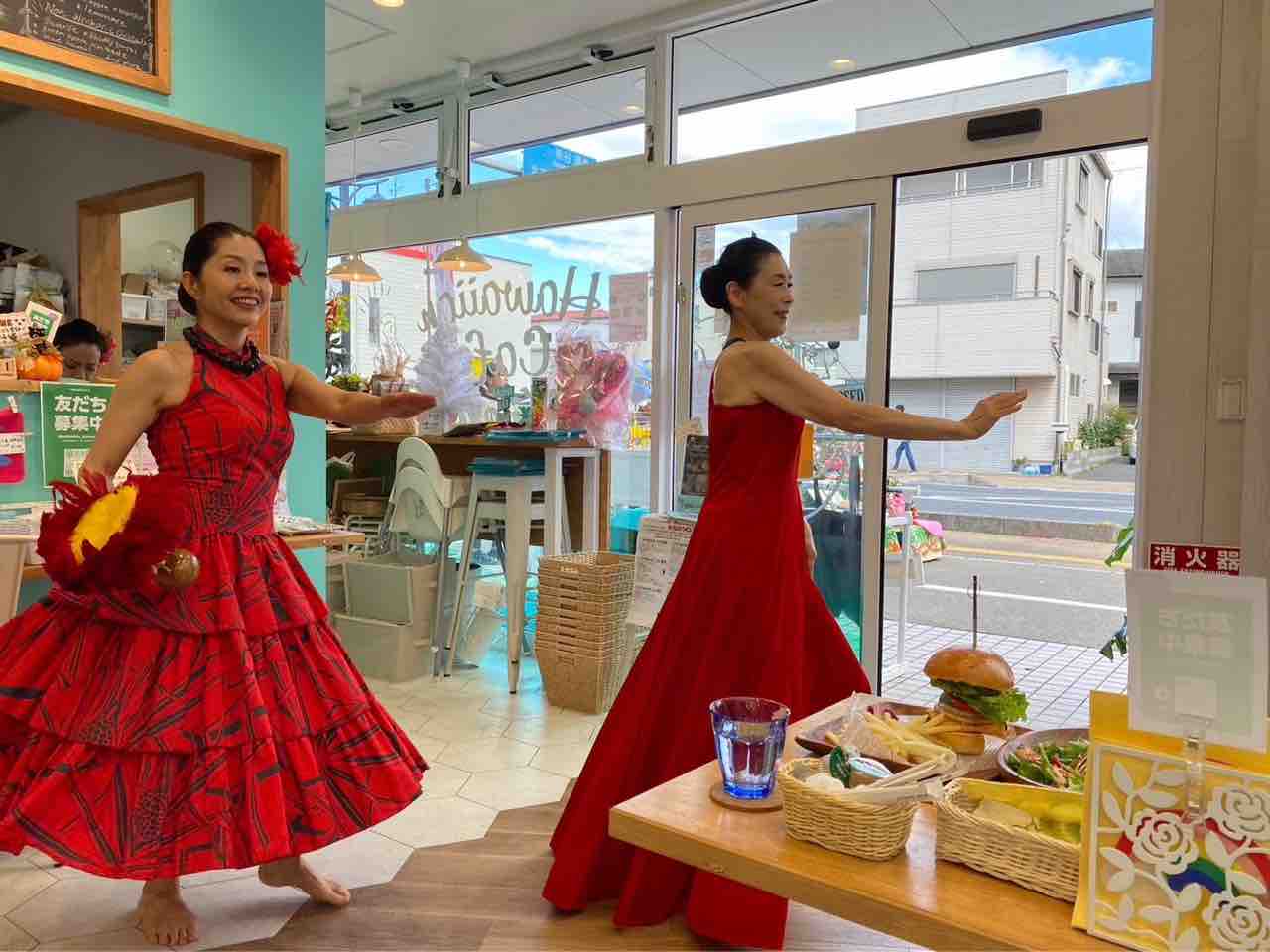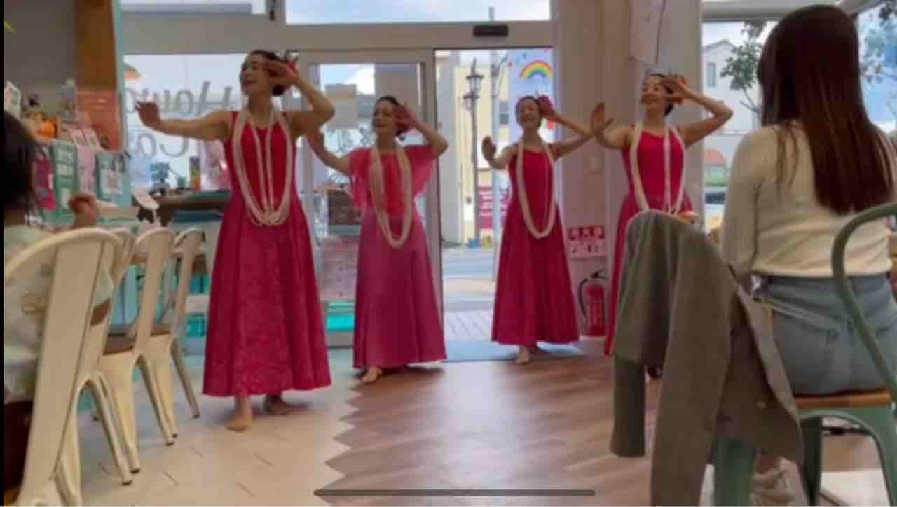 ピンクリボンマルシェご報告 昨日のマルシェのご報告を。 カフェができてから始めてのフラショー。 本当は違うものに決まっていた衣装を私のひらめきで前日に変更😅 とても素敵になりました💕 いつもとは違った感じで❤️ フラガール ヒロマーチ オデトゥアハウス プアサクラ 長い付き合いだけど、インストラクターのMちゃんとふたりで踊ったのは初めてです❣️ 最後は全員でアイノカタチ