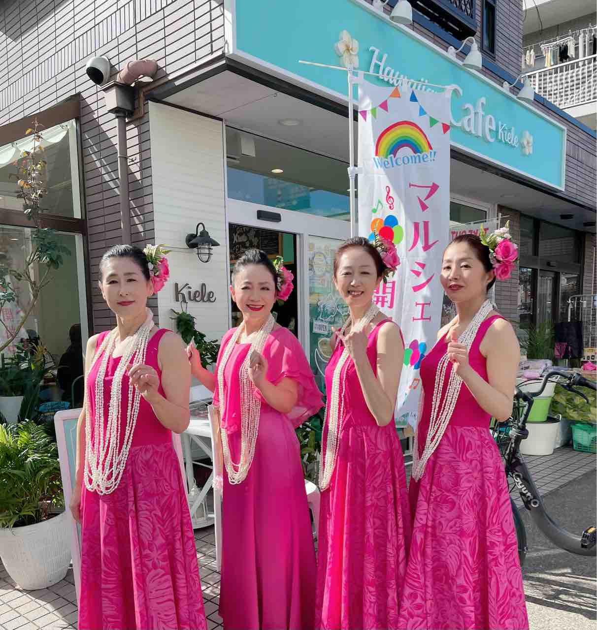 ピンクリボンマルシェ ピンクリボンマルシェ無事終了。今日参加してくれた選抜クラスの3名。 ハワイのMomo先生❤️ 久しぶりにお会いできて嬉しい😆 Momo先生のインストラクターさんたちと❤️ 了後❤️ 出店してくれた、カフェスタッフのM子さん(私の生徒さん) ショーが終わったあと、みんなでいろいろお買い物。