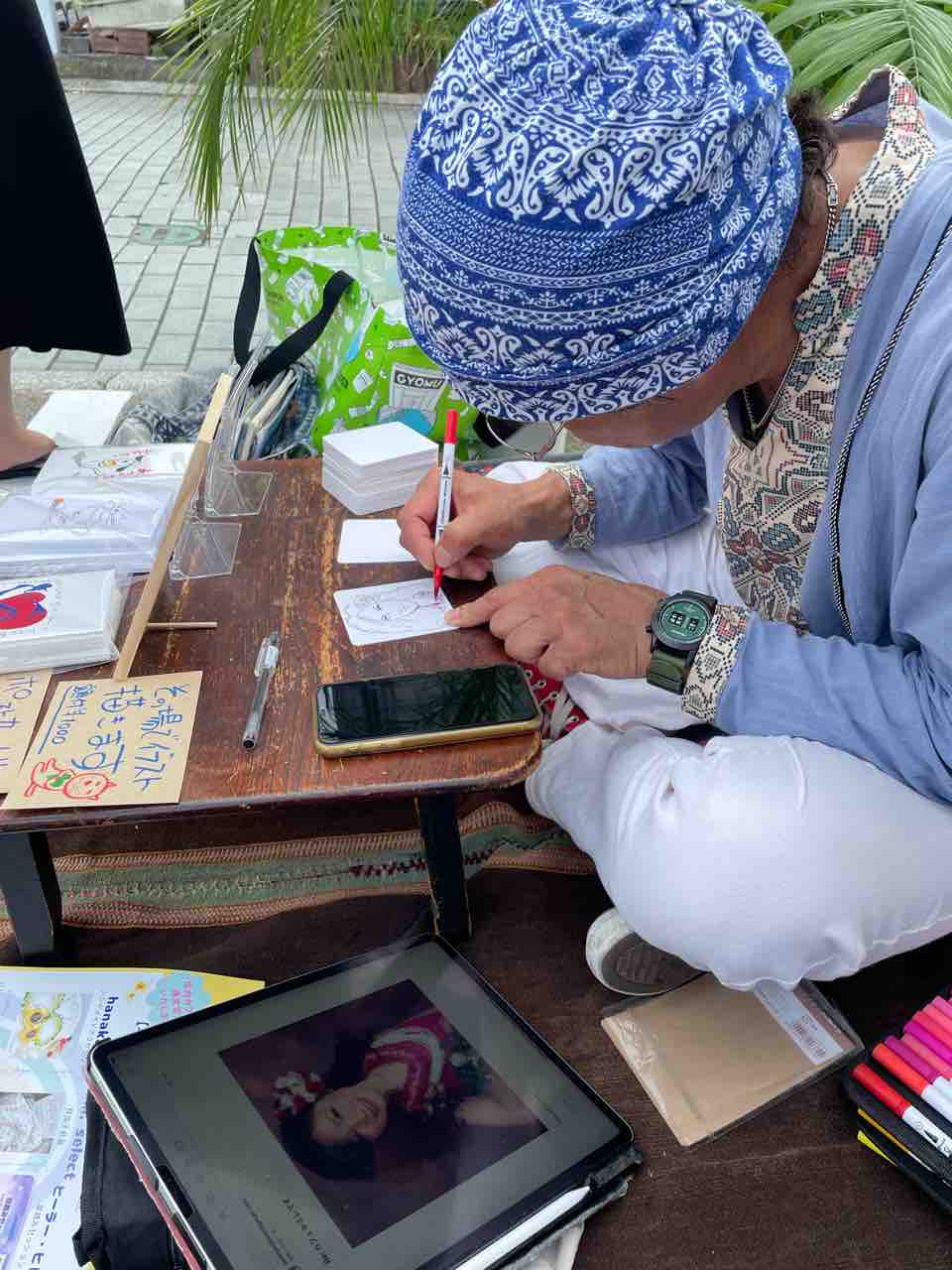 マルシェ、無事終了 今日のマルシェ、無事終了しました‼️ 今日はお子さん連れのお客様が多かったです❣️ みなさん、お食事もしてくださり店内はとても賑やかでした💕 今日出店してくださったのは、、 私の生徒さんで、スタッフでもあるM子さん 手作りアクセサリーなどのHさんほかおふたり 星占いのヒトミさん イラストレーターのIさん この写真を渡して、似顔絵を描いていただきました カフェに飾ってあるから見てみてね❣️
