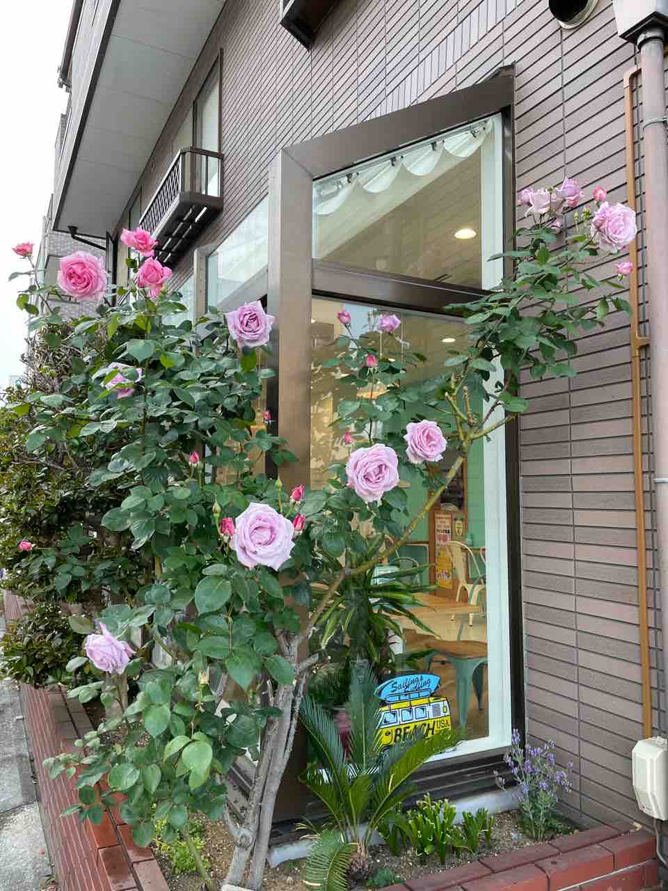 カフェの花壇に植えてある薔薇が綺麗に咲いています❤️